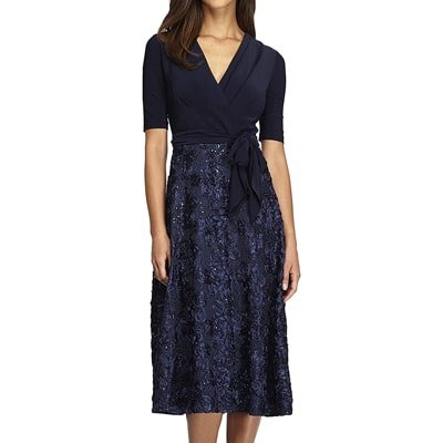 Women's Tea Length Dress with Rosette Detail (Petite & Regular)